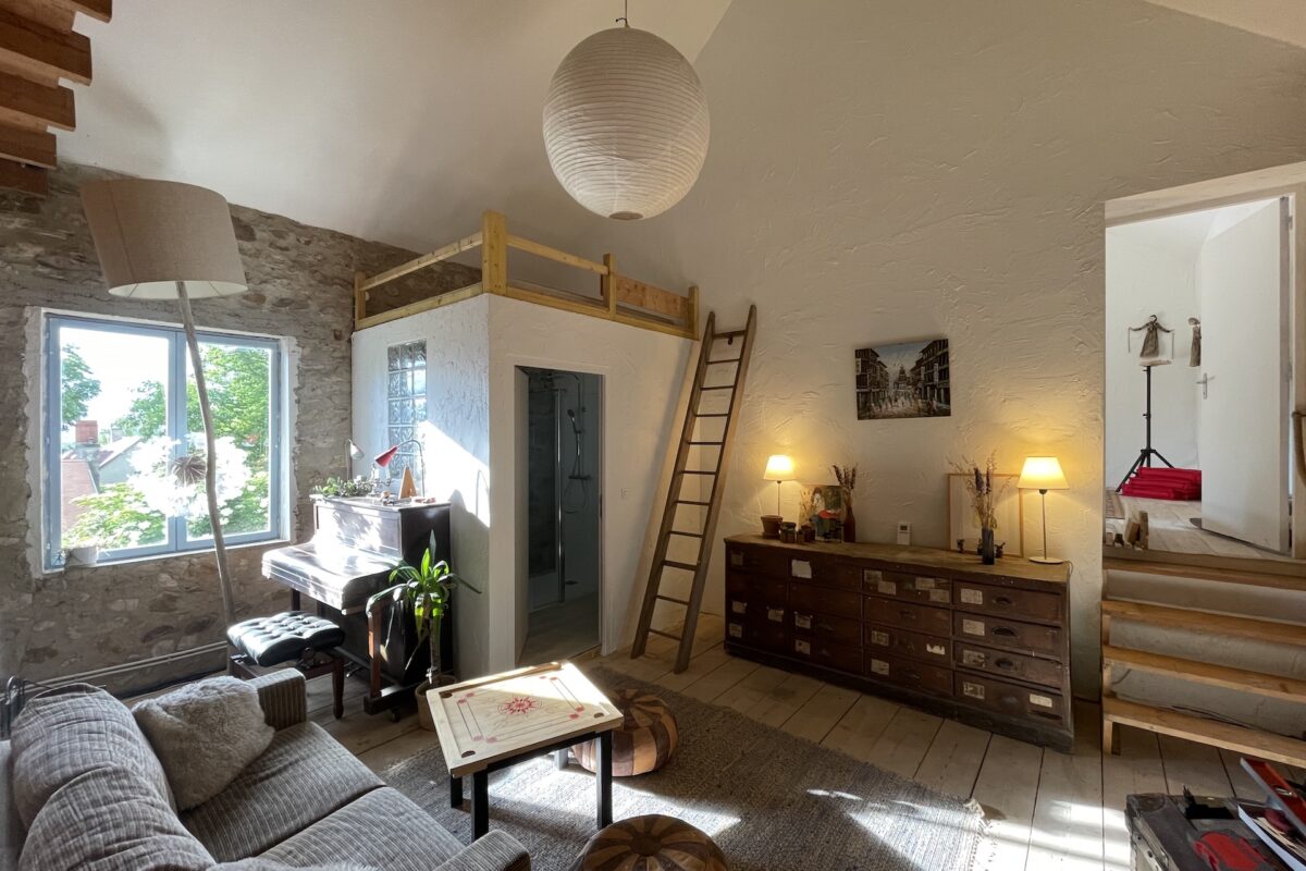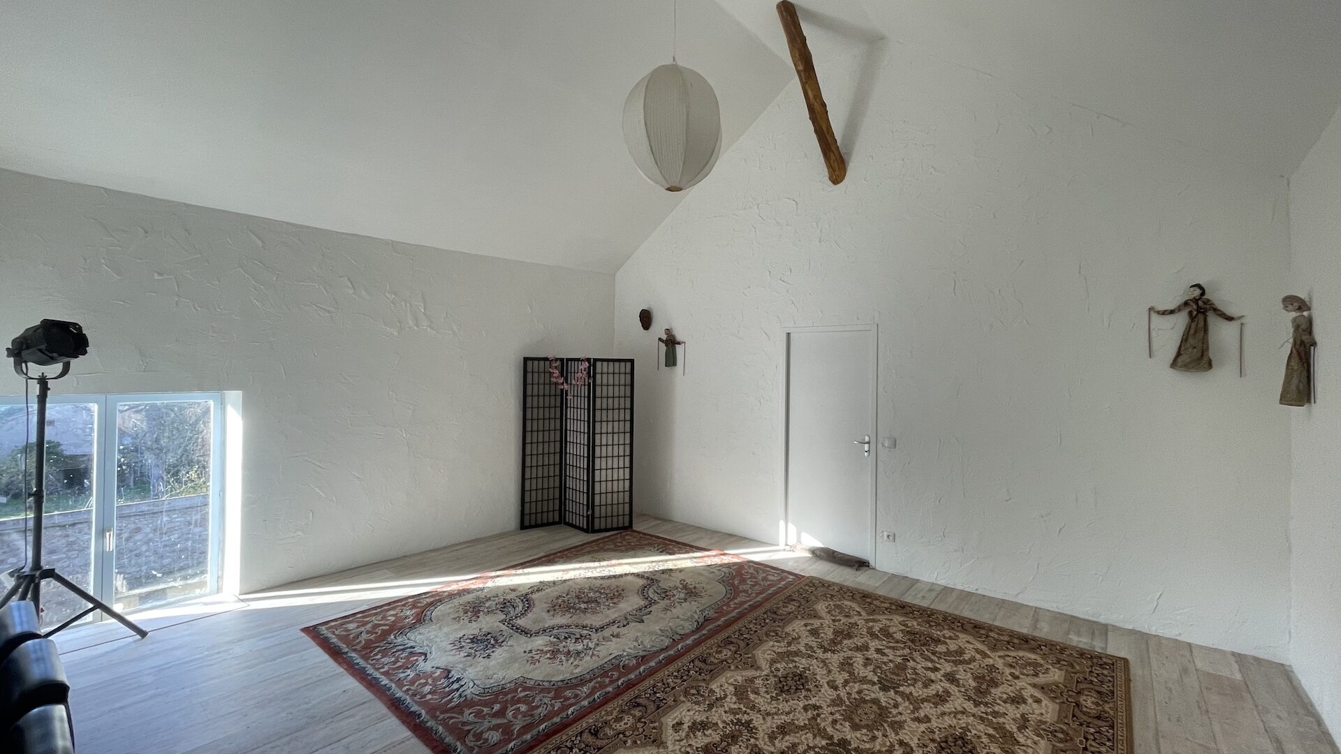 Une grande pièce lumineuse, sous poutres, modulable selon votre activité.